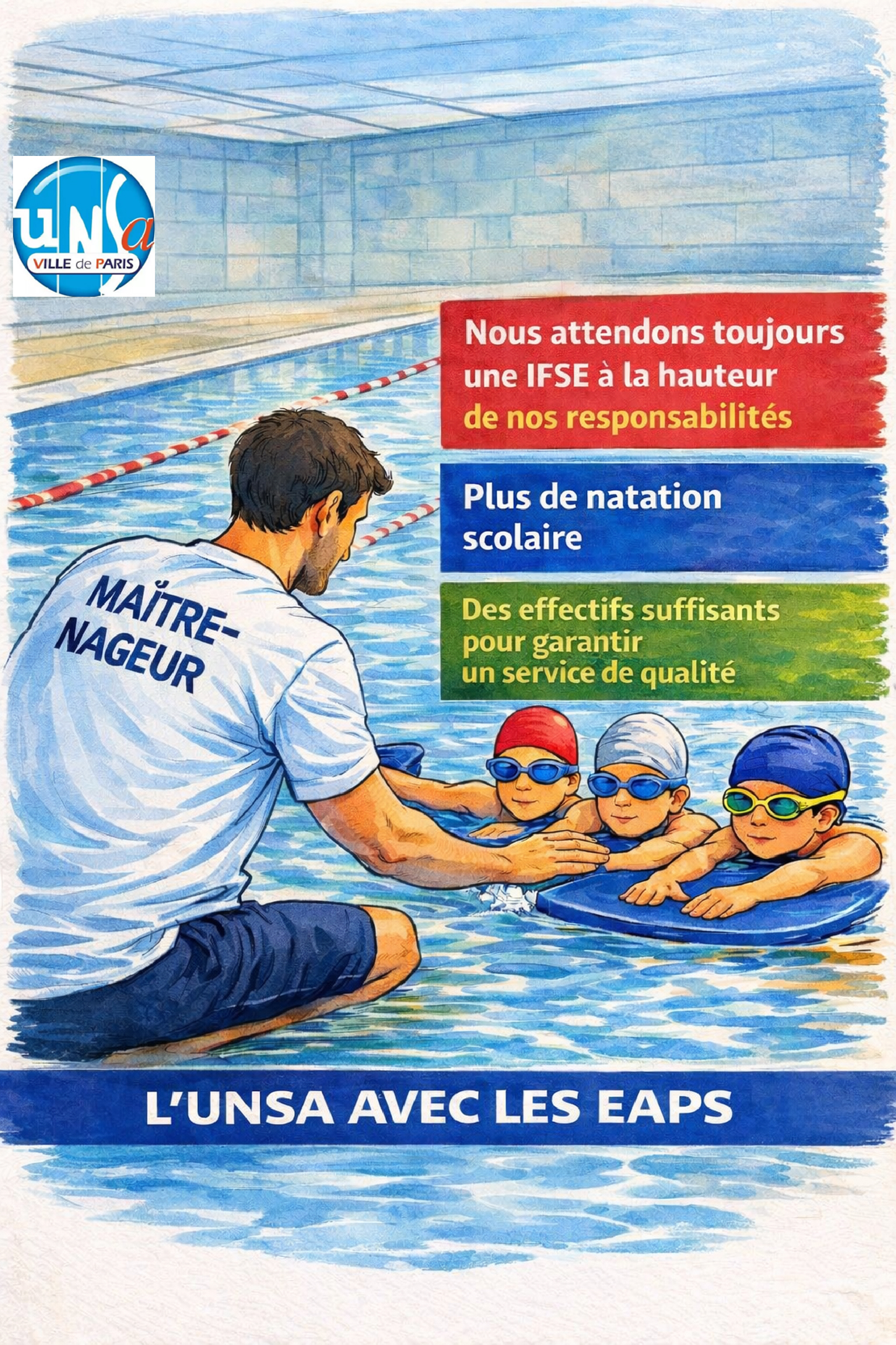 Une IFSE à la hauteur de nos responsabilités, plus de natation scolaire, des effectifs suffisants pour garantir un service de qualité