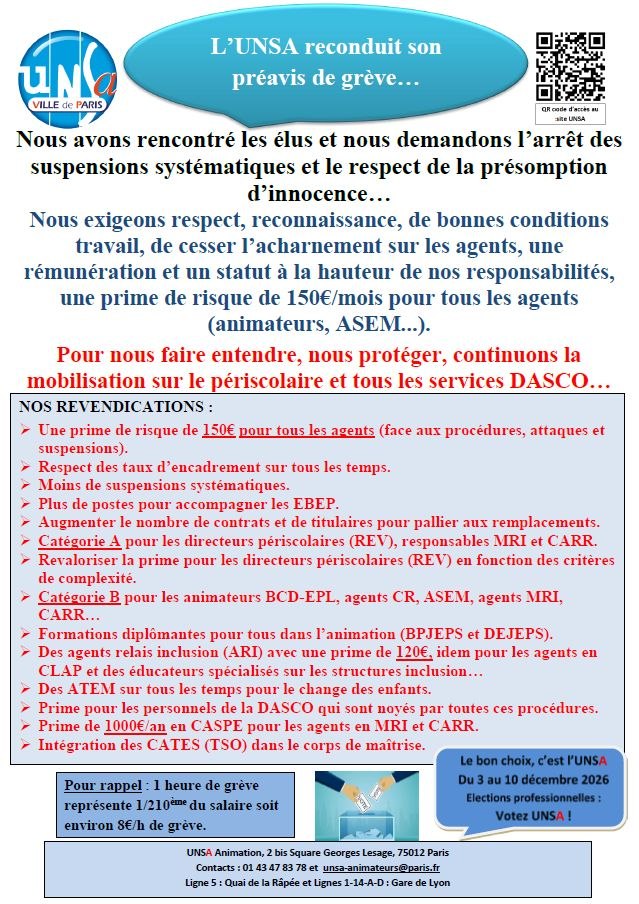 Périscolaire : reconnaissance de nos métiers de l'animation ! L'UNSA reconduit son préavis de grève.