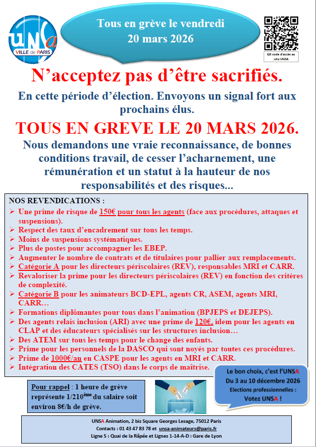 UNSA ANIMATION : Tous en grève le 20 mars !